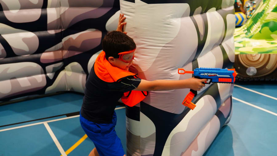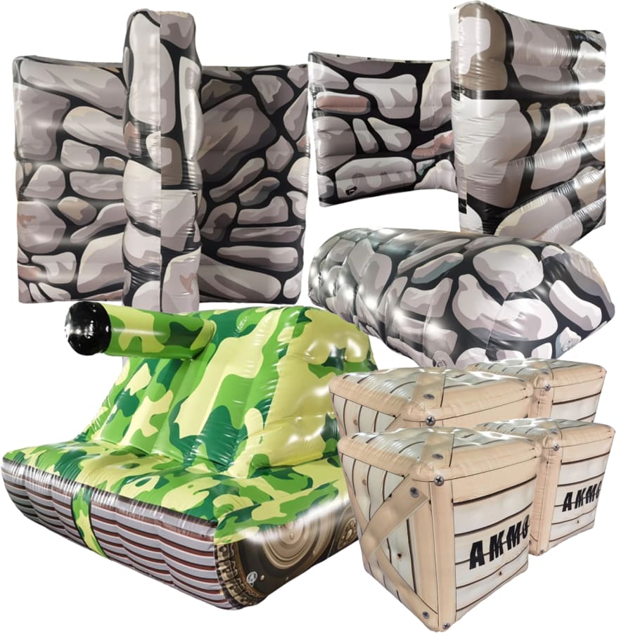 Inflatable obstacles create immersive, photo-ready battlefields.